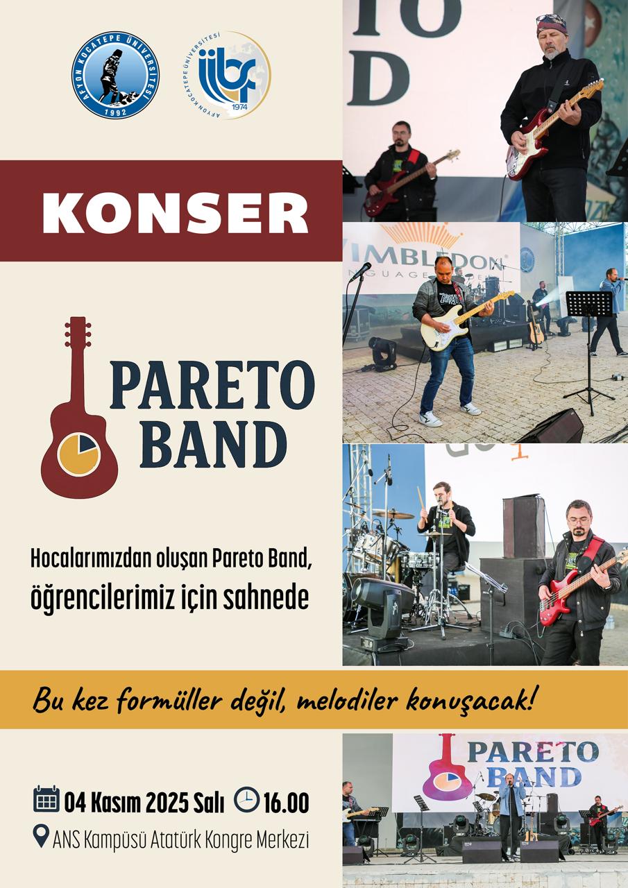 Fakültemiz akademisyenlerinden oluşan Pareto Band, öğrencilerimize özel bir konser verecektir. Müziğin enerjisinin kampüse taşınacağı bu etkinlikte tüm öğrencilerimizi aramızda görmekten memnuniyet duyarız.