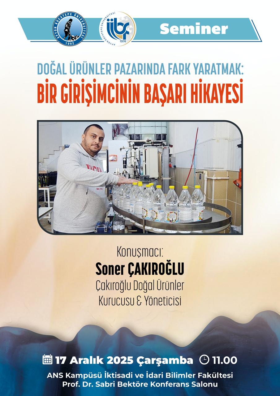 Fakültemiz tarafından, “Doğal Ürünler Pazarında Fark Yaratmak: Bir Girişimcinin Başarı Hikayesi” başlıklı bir seminer düzenlenecektir.