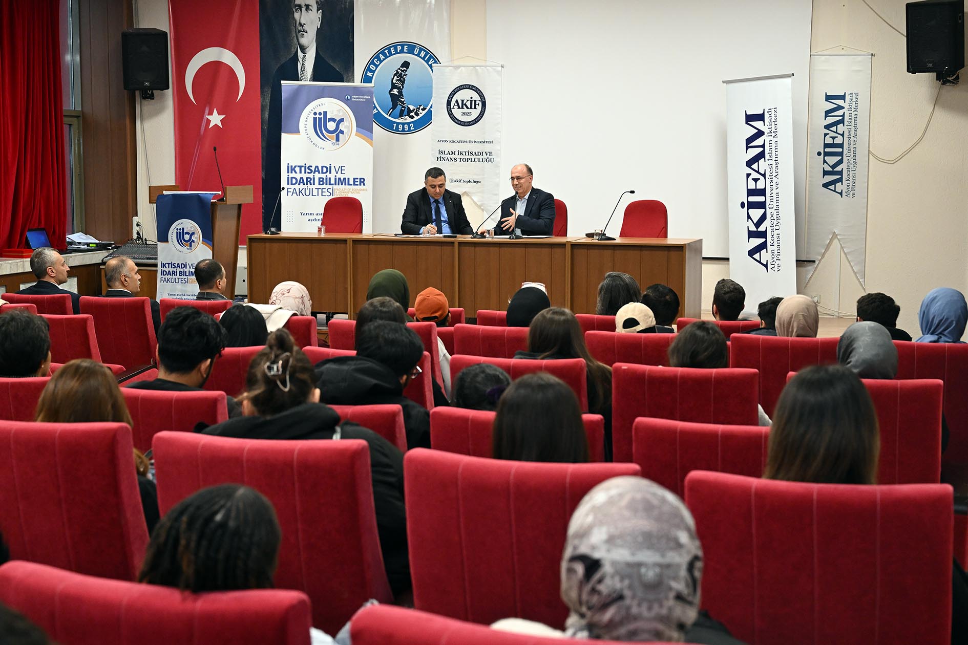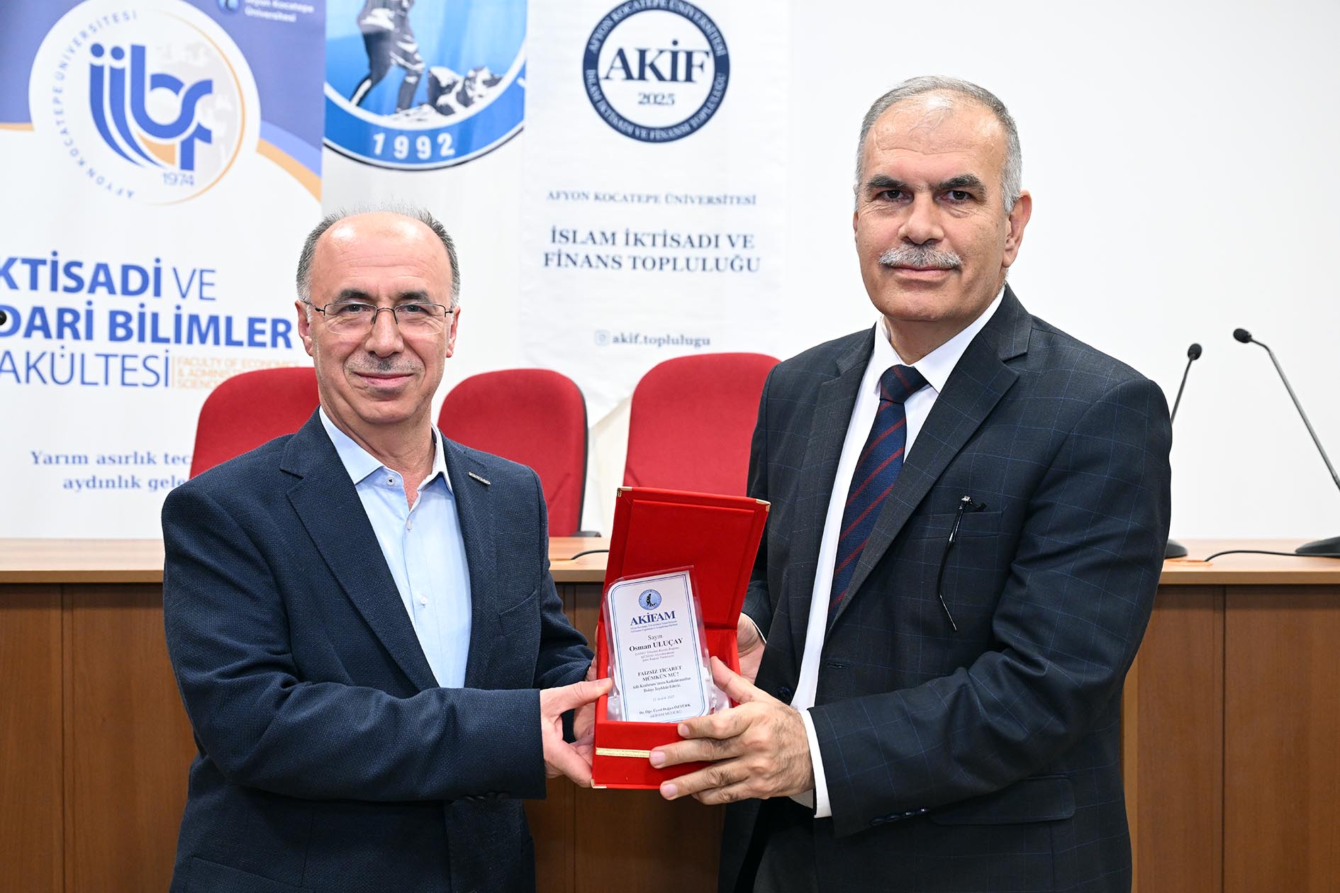 Fakültemiz İşletme Bölümü, Müstakil Sanayici ve İşadamları Derneği (MÜSİAD) Afyonkarahisar Temsilciliği, İslam İktisadi Araştırma ve Uygulama Merkezi ile İslam İktisadı ve Finansı Topluluğu (AKİF) iş birliğinde “Faizsiz Ticaret Mümkün mü?” başlıklı söyleşi düzenlendi.