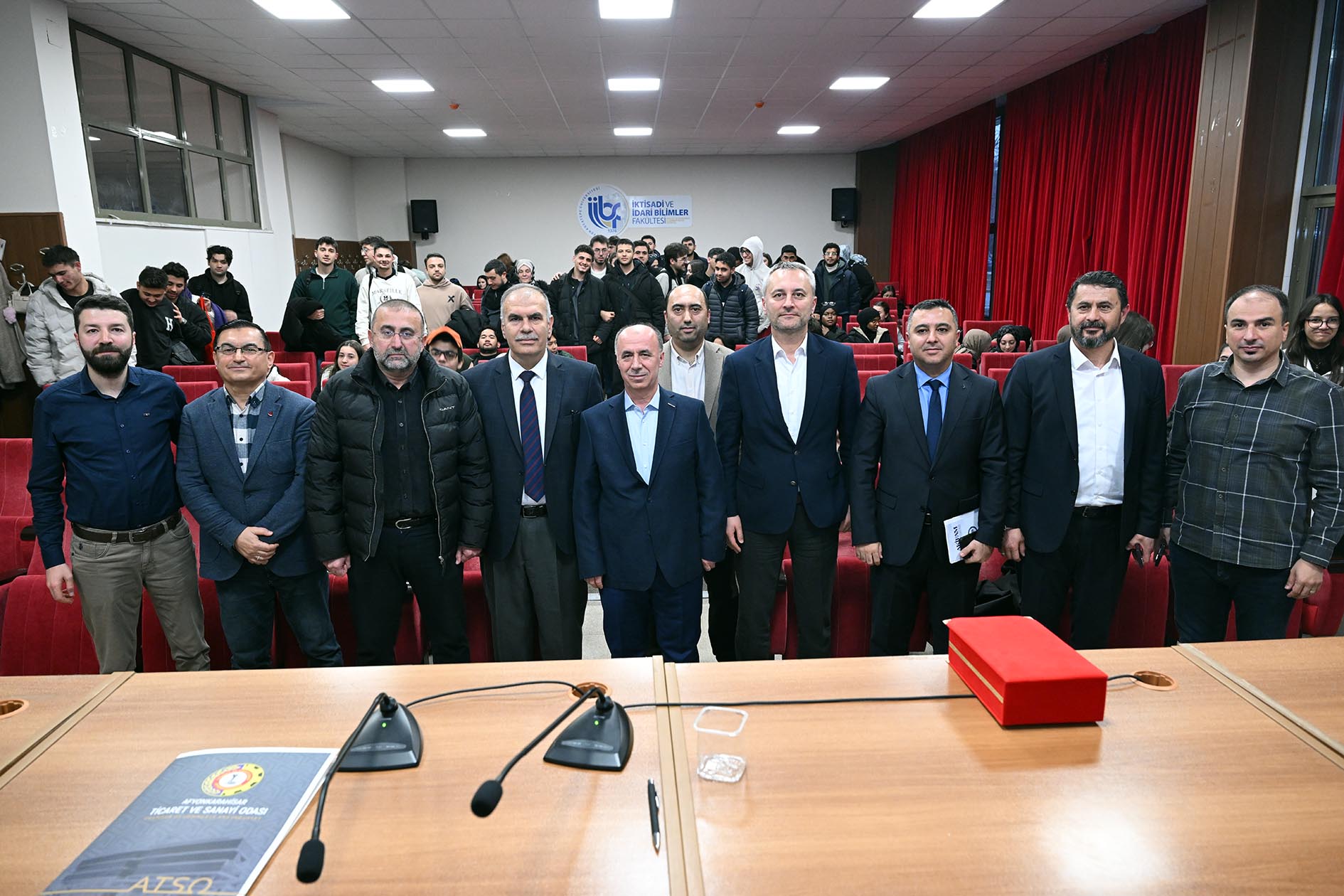 Prof. Dr. Sabri Bektöre Konferans Salonunda düzenlenen etkinliğe; AKÜ Rektör Yardımcısı Prof. Dr. Şuayıp Özdemir, İİBF Dekanı Prof. Dr. Gökhan Demirtaş, İİBF İşletme Bölümü Öğretim Üyesi Prof. Dr. Tuğrul Kandemir, İİBF İşletme Bölümü Öğretim Üyesi Doç. Dr. Ender Baykut, AKİFAM Müdürü Dr. Öğretim Üyesi Doğan Öztürk ile akademik idari personel ve öğrenciler katıldı.